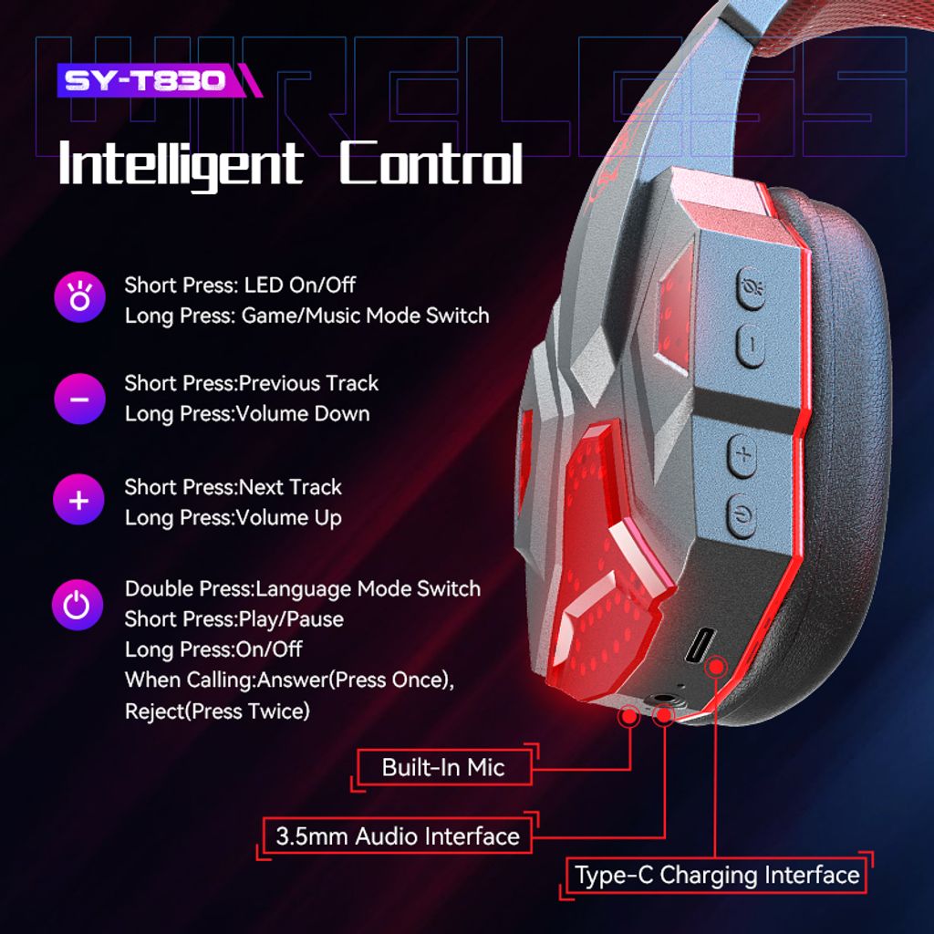 Bluetooth wireless gaming headset with dual earbuds and microphone for mobile phones and laptops